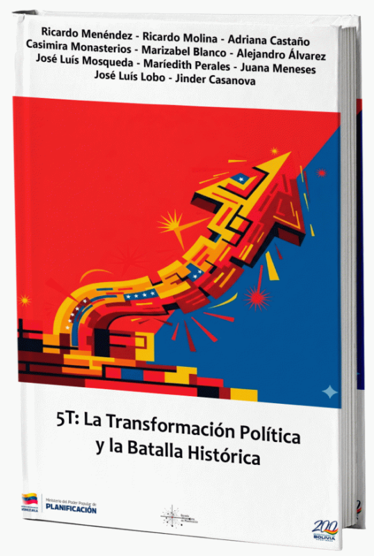 Ricardo Menéndez, Ricardo Molina, Adriana Castaño, Casimira Monasterios, Marizabel Blanco, Alejandro Álvarez, José Luís Mosqueda, Maríedith Perales, Juana Meneses, José Luís Lobo and Jinder Casanova. (2025). 5T: La Transformación Política y la Batalla Histórica. Caracas: Fundación Escuela Venezolana de Planificación.